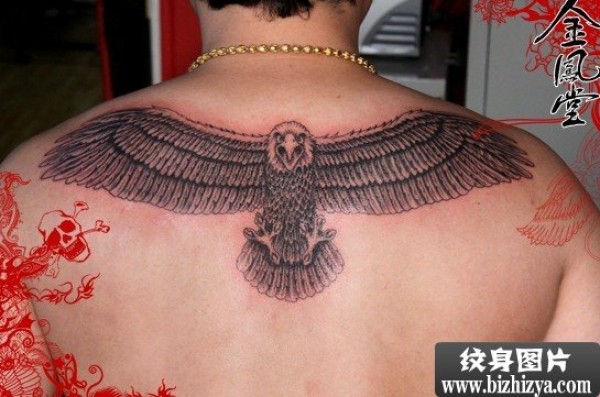 后背展翅雄鹰纹身图金凤堂作品_凤凰纹身图案大全_纹身图吧