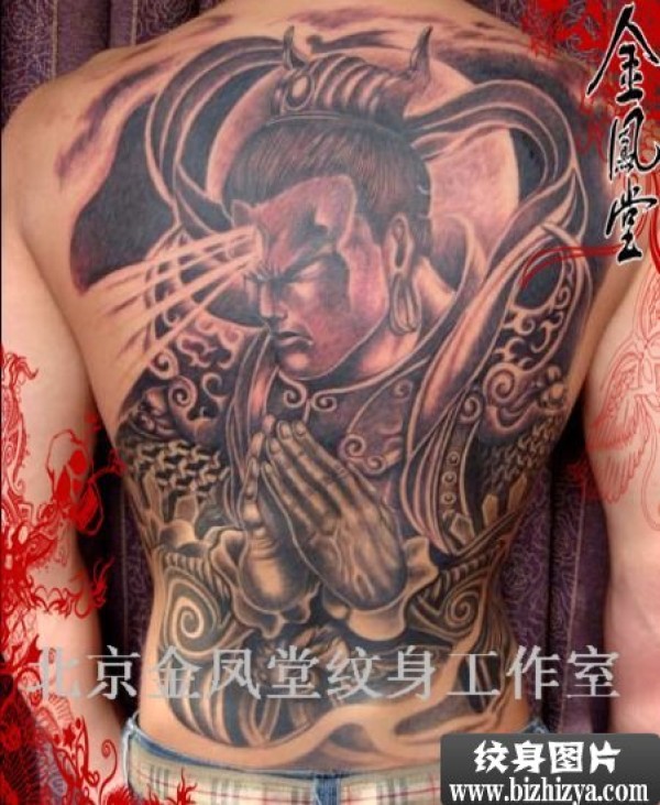 背部二郎神杨戬纹身作品北京金凤堂纹身店作品_凤凰纹身图案大全_纹身图吧