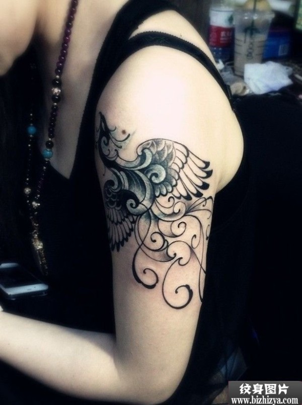 手臂线条凤凰图腾纹身图案图片_凤凰纹身图案大全_纹身图吧