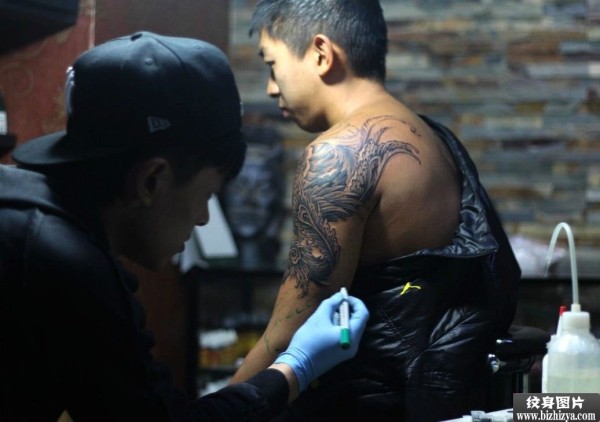 纹身师手臂凤凰纹身过程图案图片_凤凰纹身图案大全_纹身图吧
