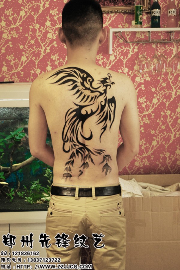 满背凤凰图腾图腾作品_凤凰纹身图案大全_纹身图吧