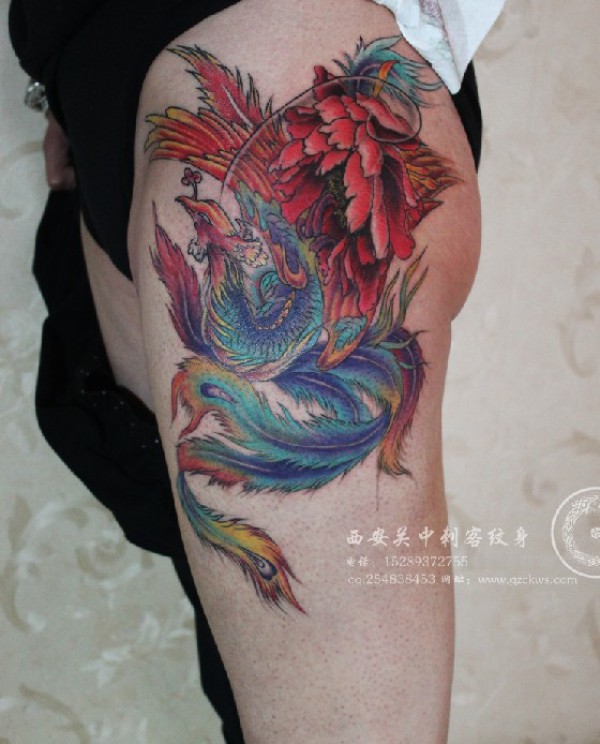 关中刺客大腿凤凰纹身西安关中刺客纹身_凤凰纹身图案大全_纹身图吧