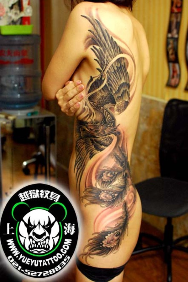 一款好看的美女满背凤凰纹身图案_凤凰纹身图案大全_纹身图吧