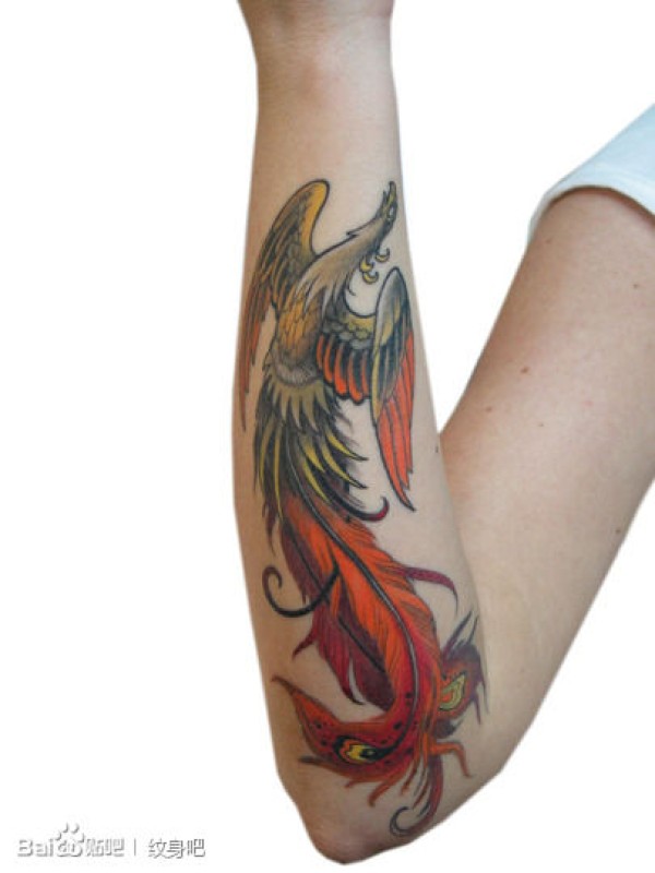 女生手臂潮流时尚的传统凤凰纹身图案_凤凰纹身图案大全_纹身图吧