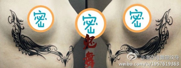 美女胸部潮流抽象的凤凰纹身图案_凤凰纹身图案大全_纹身图吧