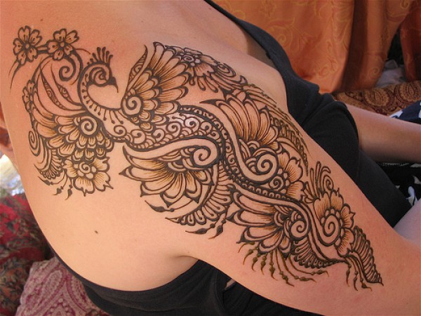 女生肩膀处潮流经典图腾凤凰纹身图案_凤凰纹身图案大全_纹身图吧