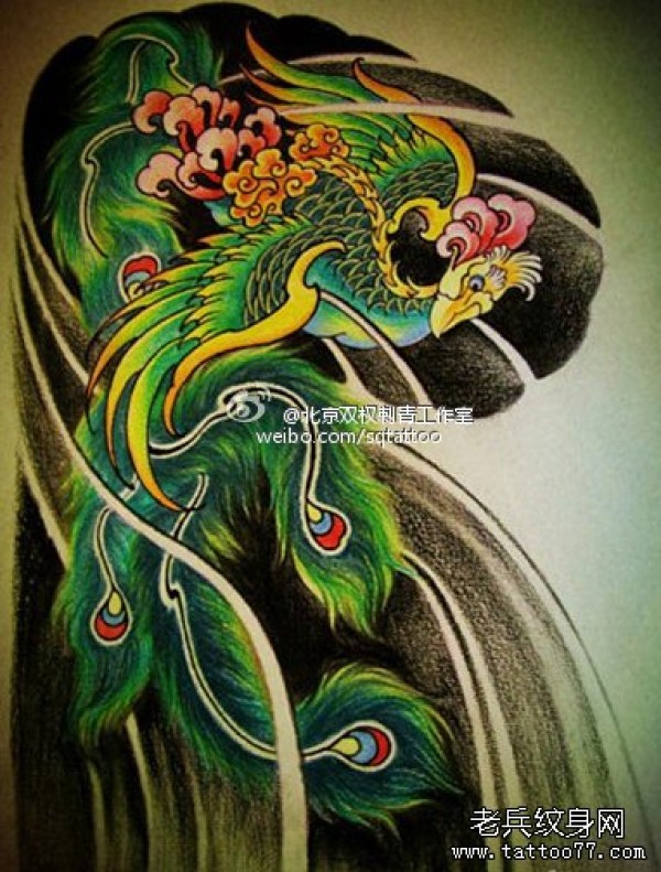 一款潮流时尚的传统半胛凤凰纹身图案_凤凰纹身图案大全_纹身图吧