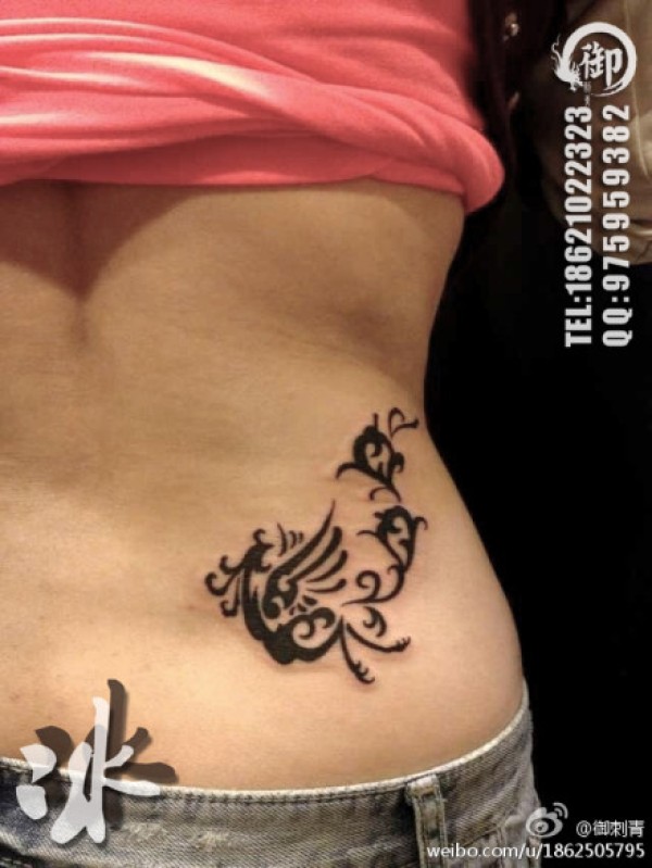 女生腰部潮流好看的图腾凤凰纹身图案_凤凰纹身图案大全_纹身图吧