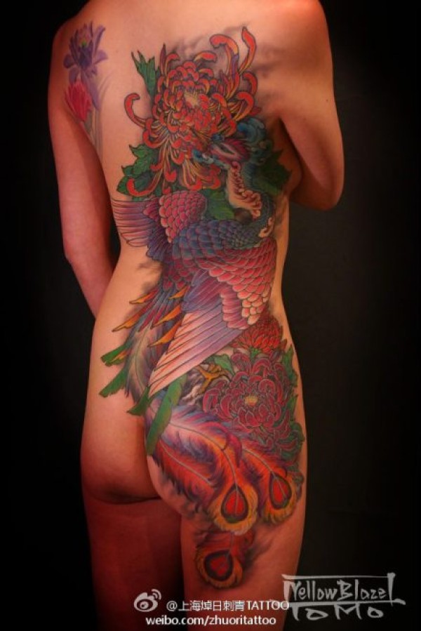 女孩子满背彩色凤凰纹身图案_凤凰纹身图案大全_纹身图吧