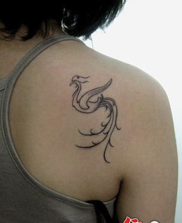 女生肩背简单好看的凤凰纹身图案_凤凰纹身图案大全_纹身图吧