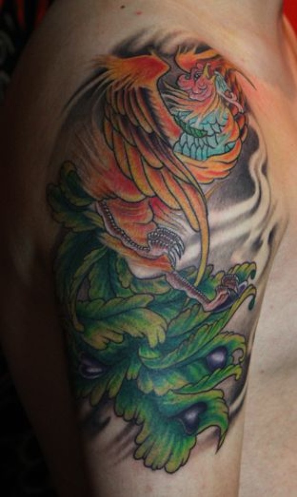 手臂漂亮的彩色凤凰纹身图案_凤凰纹身图案大全_纹身图吧