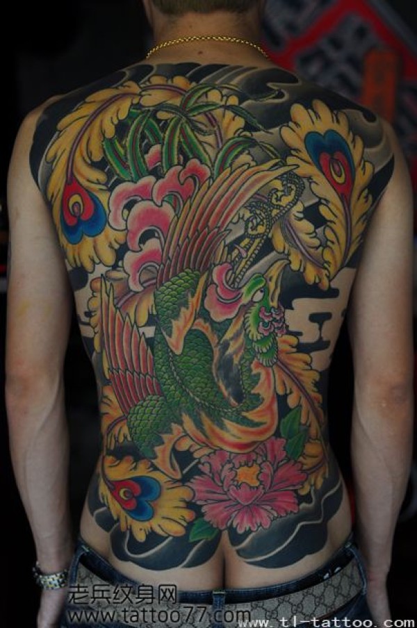 好看的满背彩色凤凰纹身图案_凤凰纹身图案大全_纹身图吧