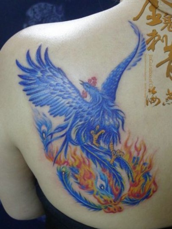女孩子肩背彩色凤凰纹身图案_凤凰纹身图案大全_纹身图吧