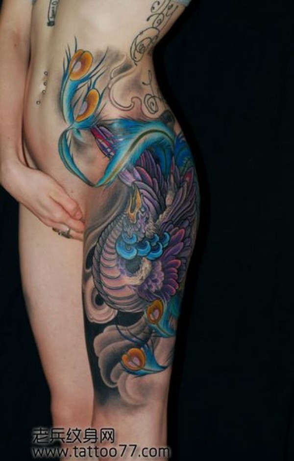 美女腿部超美的一款凤凰纹身图案_凤凰纹身图案大全_纹身图吧