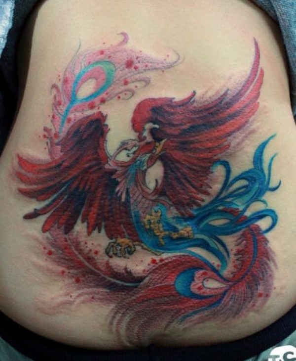 女孩子满背彩色凤凰纹身图案_凤凰纹身图案大全_纹身图吧