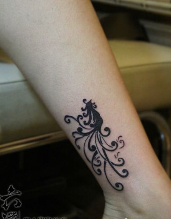 女孩子腿部精美的图腾凤凰纹身图案_凤凰纹身图案大全_纹身图吧