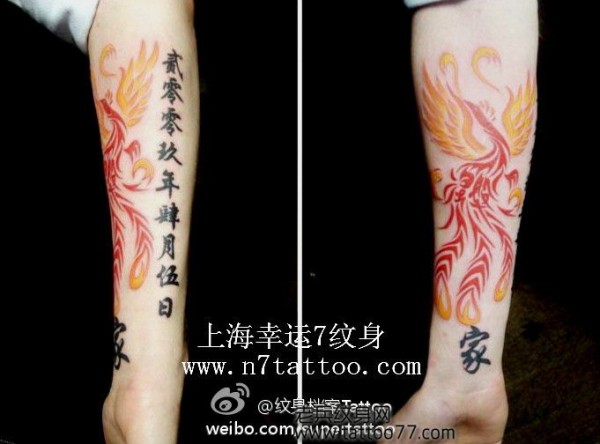 一款彩色图腾凤凰纹身图案_凤凰纹身图案大全_纹身图吧