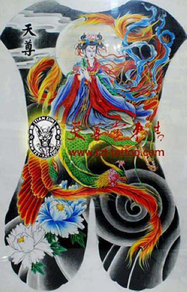 武汉纹身店满背仙女凤凰牡丹纹身图案图片_凤凰纹身图案大全_纹身图吧