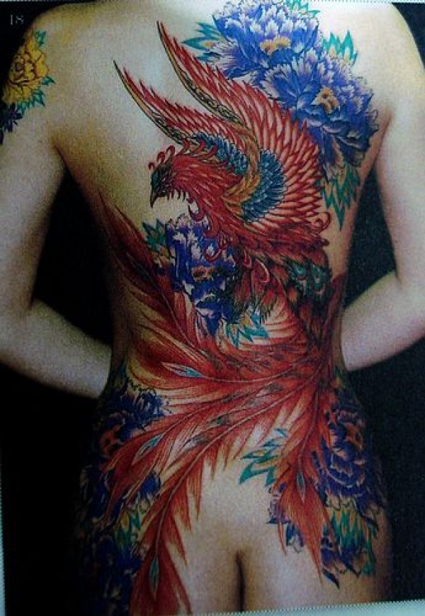 女孩子满背彩色凤凰纹身图案_凤凰纹身图案大全_纹身图吧