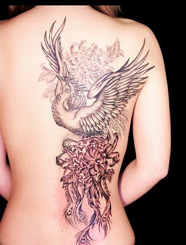 女孩子背部精美的凤凰纹身图案_凤凰纹身图案大全_纹身图吧