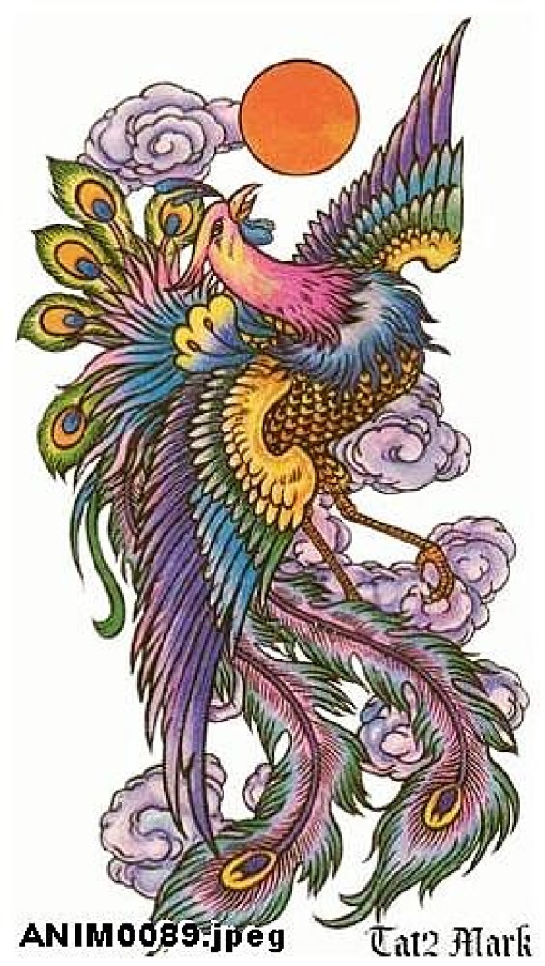 武汉老兵纹身店一款适合纹满背的彩色凤凰文_凤凰纹身图案大全_纹身图吧