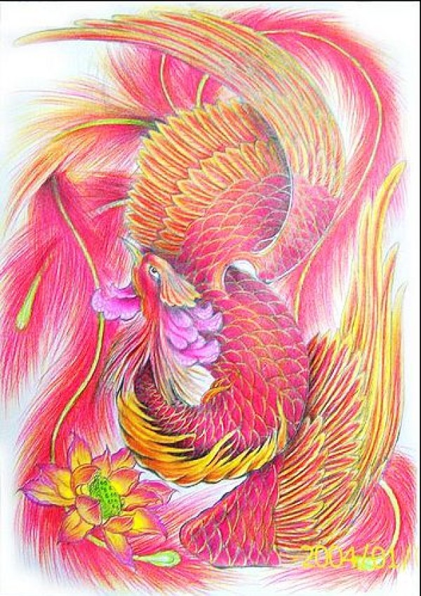 女孩子满背彩色凤凰纹身图案_凤凰纹身图案大全_纹身图吧