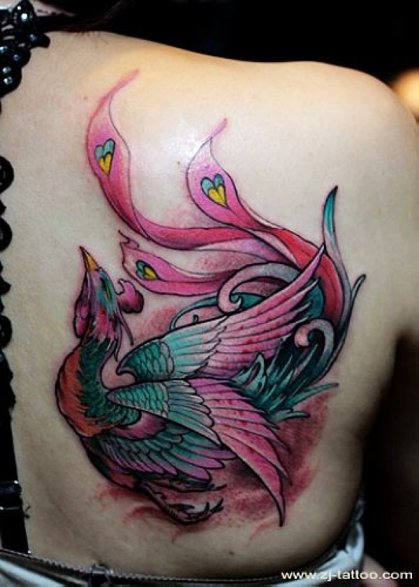 女孩子满背彩色凤凰纹身图案_凤凰纹身图案大全_纹身图吧