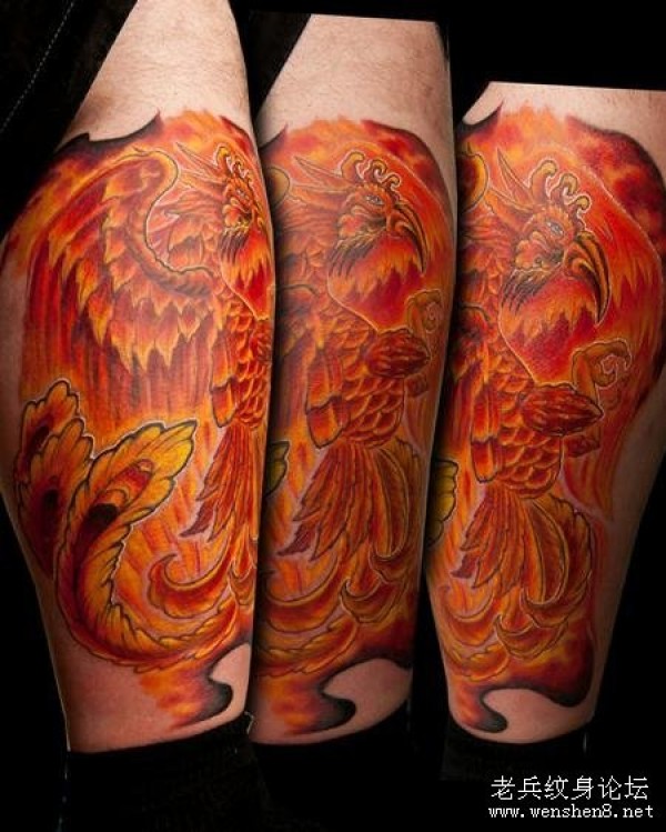 一款腿部彩色火凤凰纹身图案纹身图片_凤凰纹身图案大全_纹身图吧