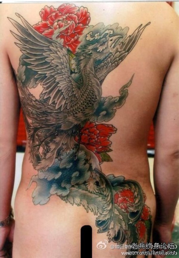 背部凤凰牡丹纹身图案纹身图片_凤凰纹身图案大全_纹身图吧