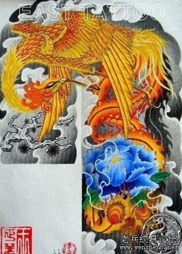 彩色半胛凤凰牡丹纹身图案纹身图片武汉纹身_凤凰纹身图案大全_纹身图吧