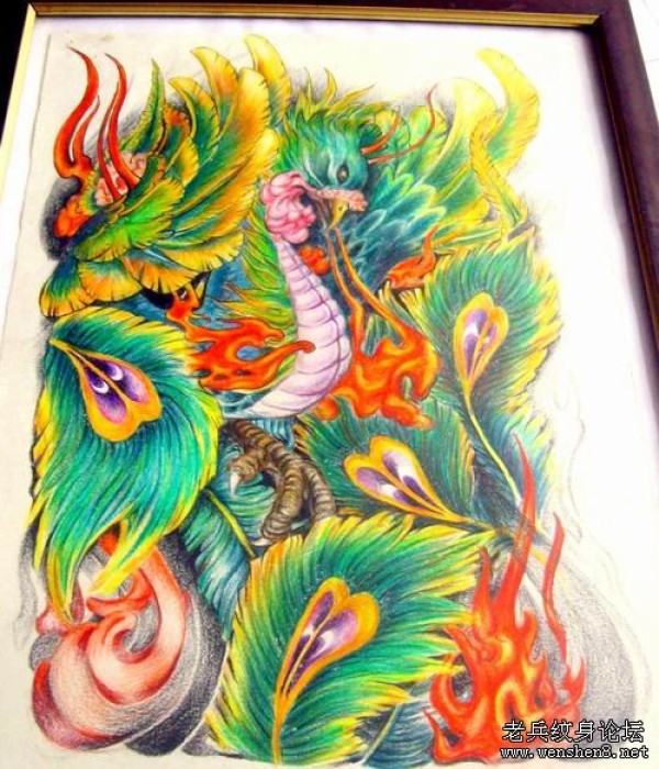 女孩子满背彩色凤凰纹身图案_凤凰纹身图案大全_纹身图吧