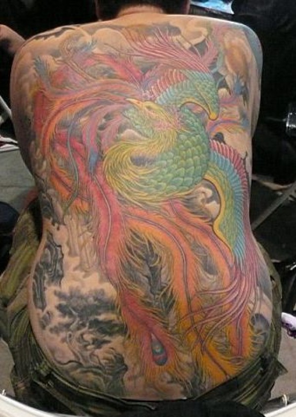 女孩子满背彩色凤凰纹身图案_凤凰纹身图案大全_纹身图吧