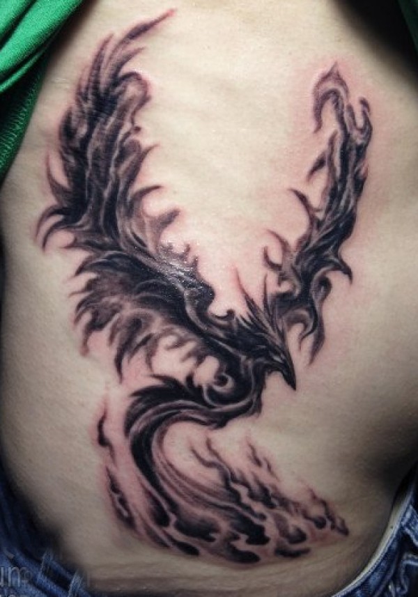 男人侧腰火凤凰纹身_凤凰纹身图案大全_纹身图吧