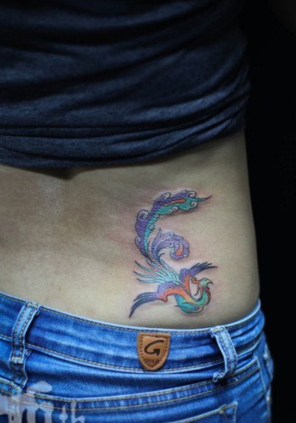腰部图腾凤凰纹身图案_凤凰纹身图案大全_纹身图吧