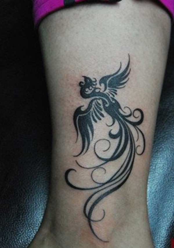 女生腿部凤凰纹身_凤凰纹身图案大全_纹身图吧