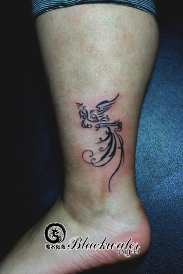 腿部精美好看的图腾凤凰纹身图案_凤凰纹身图案大全_纹身图吧