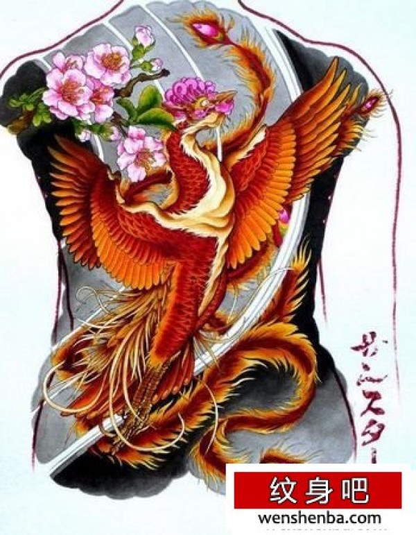精美好看的满背凤凰纹身图案_凤凰纹身图案大全_纹身图吧