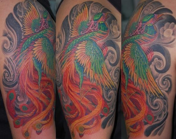 大臂彩色凤凰_凤凰纹身图案大全_纹身图吧