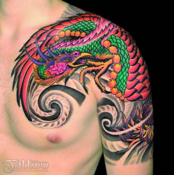 彩色凤凰半胛_凤凰纹身图案大全_纹身图吧