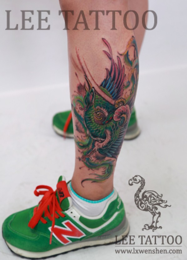 小腿彩色凤凰纹身图案_凤凰纹身图案大全_纹身图吧
