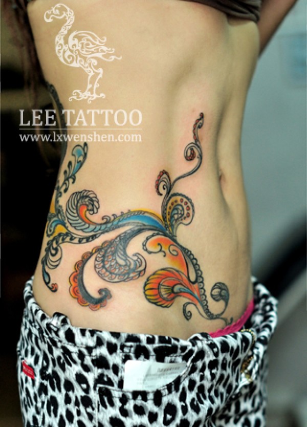 一款女生腹部图腾凤凰纹身图案_凤凰纹身图案大全_纹身图吧