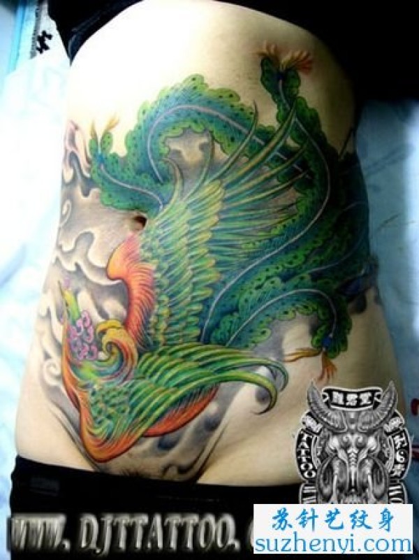 腹部彩色凤凰纹身图案纹身_凤凰纹身图案大全_纹身图吧