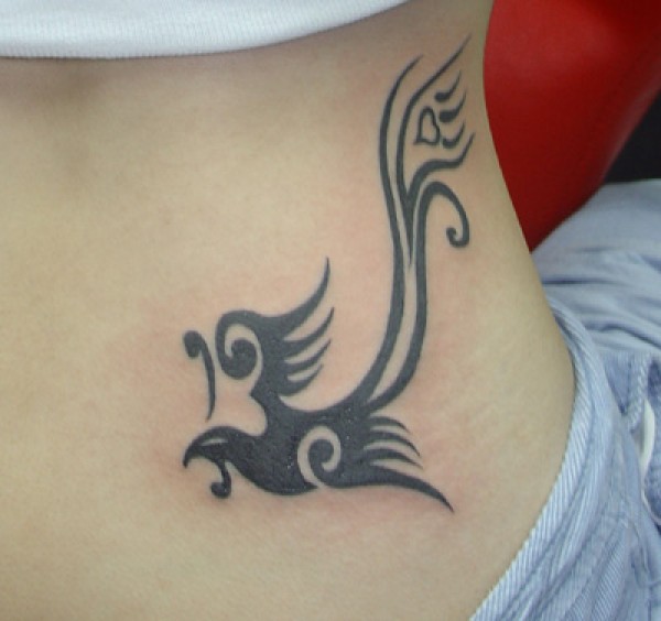 女孩子颈部小巧的图腾凤凰纹身图案_凤凰纹身图案大全_纹身图吧