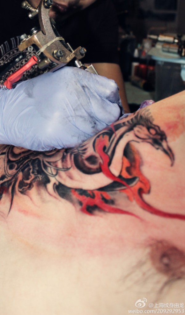一款男孩子侧胸图腾凤凰纹身图案_凤凰纹身图案大全_纹身图吧