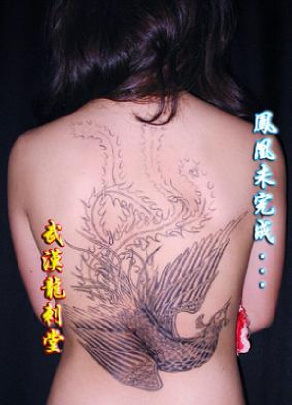 女孩子背部精美的凤凰纹身图案_凤凰纹身图案大全_纹身图吧