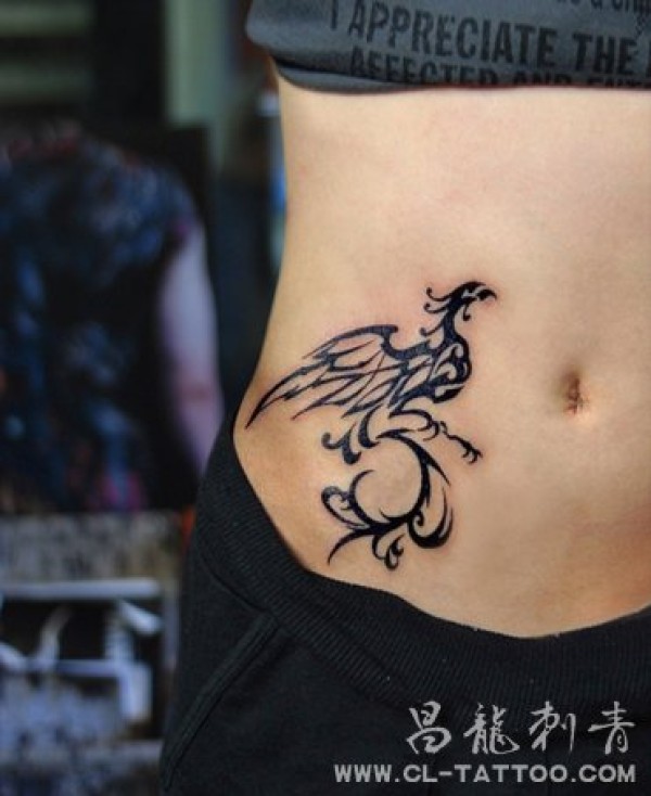 一款女生腹部图腾凤凰纹身图案_凤凰纹身图案大全_纹身图吧