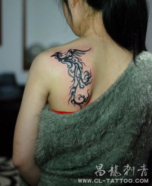 女孩子背部精美的凤凰纹身图案_凤凰纹身图案大全_纹身图吧
