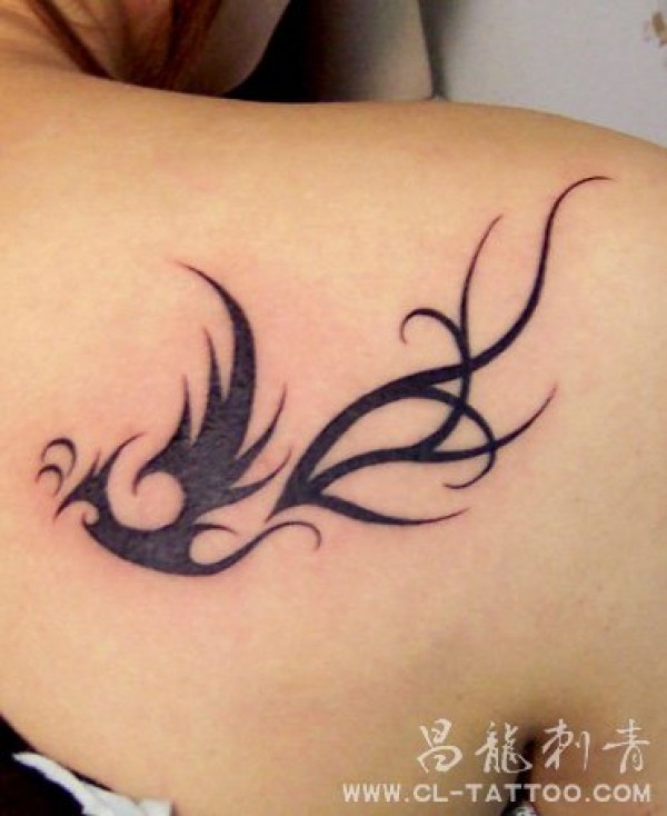 女孩子颈部小巧的图腾凤凰纹身图案_凤凰纹身图案大全_纹身图吧