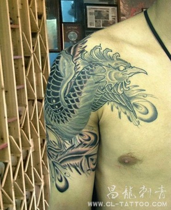 半胛凤凰纹身_男士大图_凤凰纹身图案大全_纹身图吧