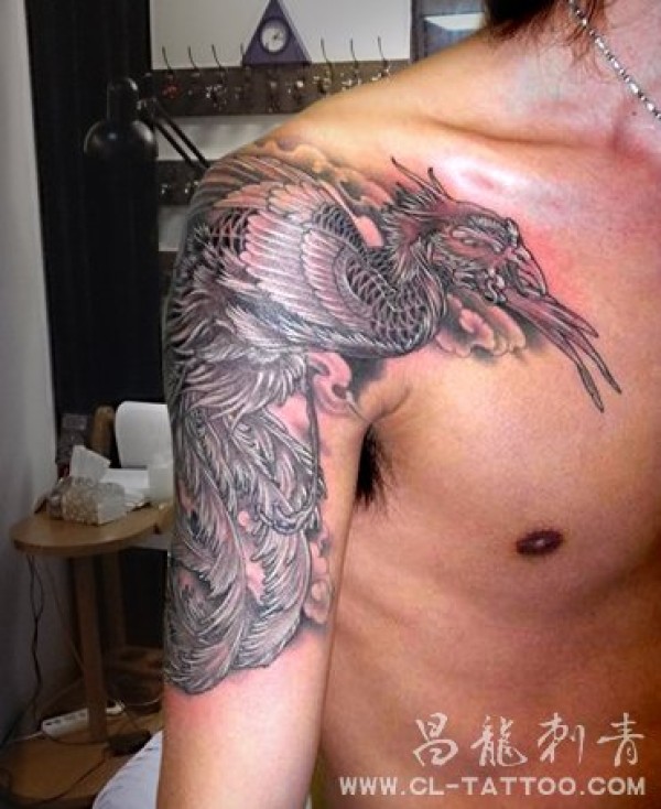 半胛凤凰_男士大图_凤凰纹身图案大全_纹身图吧